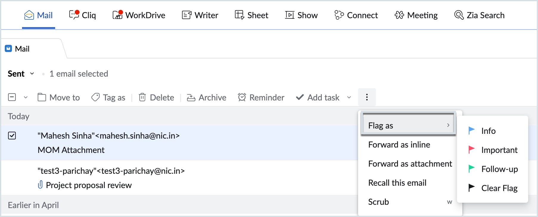 Flags are tools that come in handy to manage your emails and organize them for easier identification at a later time. NICeMail provides three types of flags that can be applied to emails.