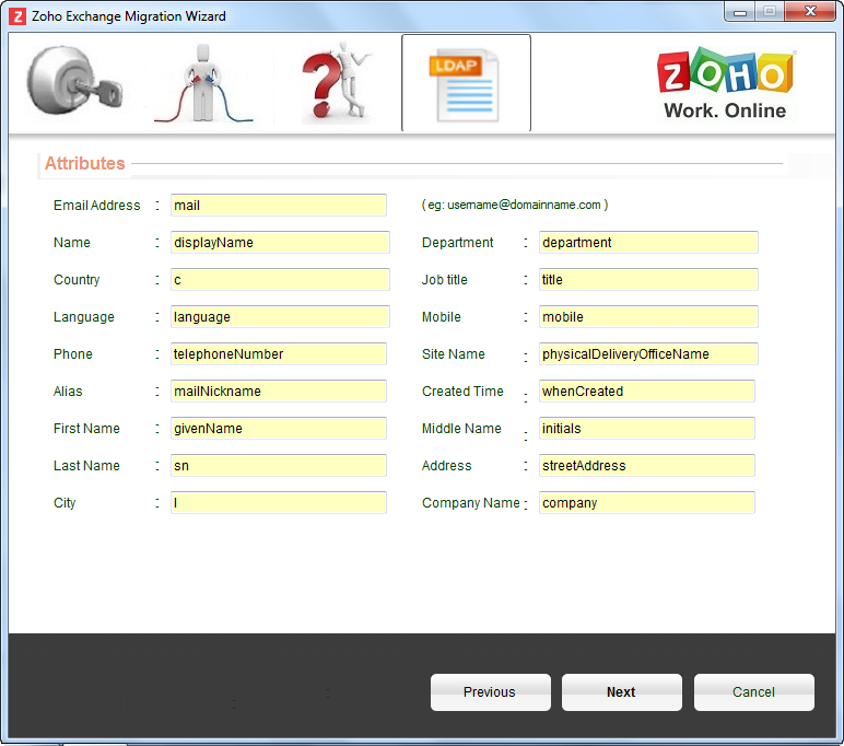 - You can provide the attributes which match the different fields in the Zoho Mail user details section.