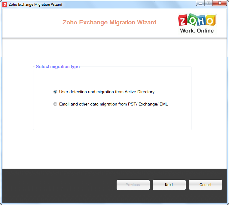 - Launch the Zoho Mail Migration Wizard using the desktop shortcut or execute the file 'ZohoMigrationWizard.exe' from \Zoho\Zoho Migration Wizard\bin folder, under the installation path.