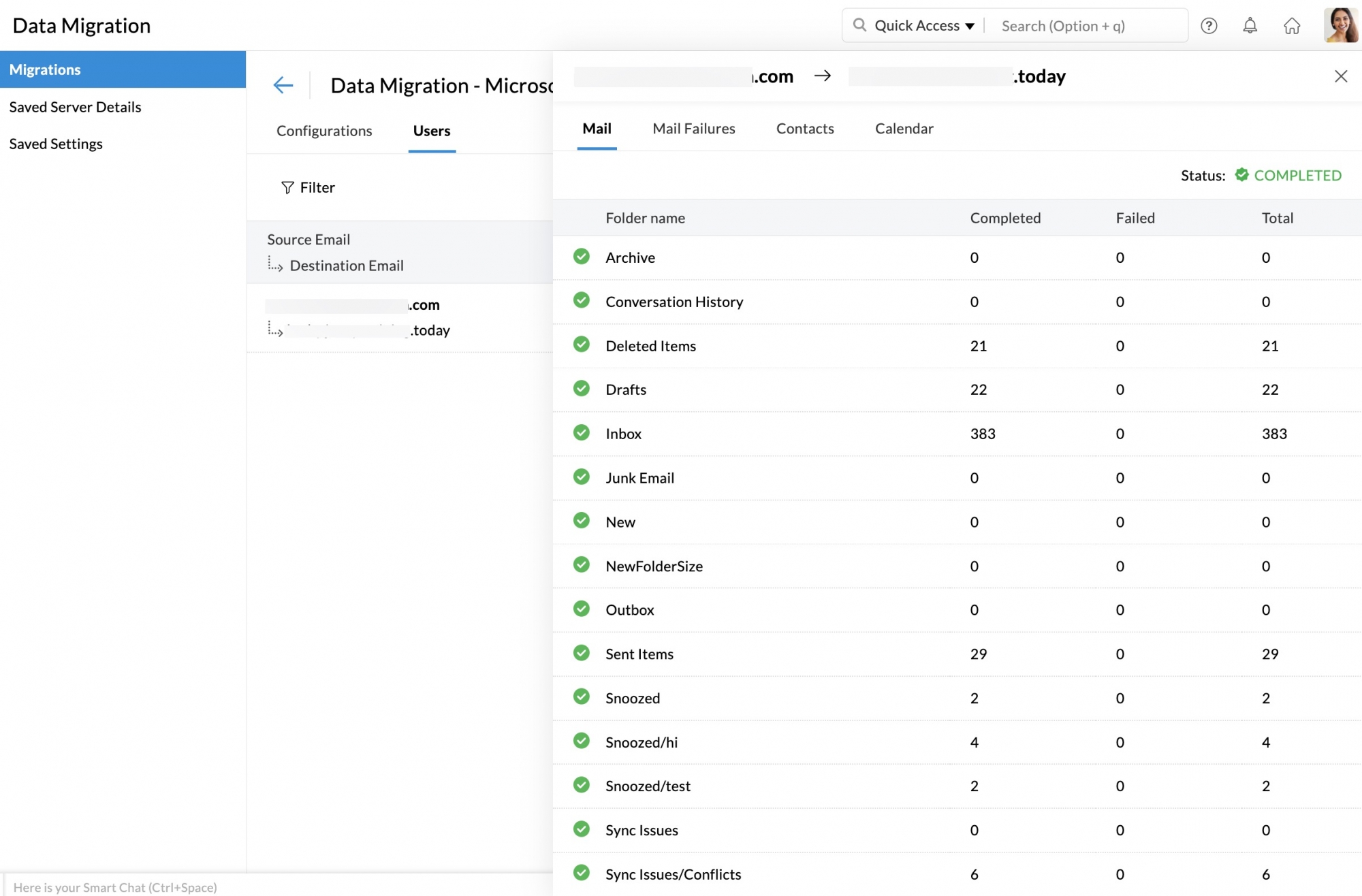 - The Calendar migration details can also be viewed from the same page. Go to the Calendar tab to view the details.
