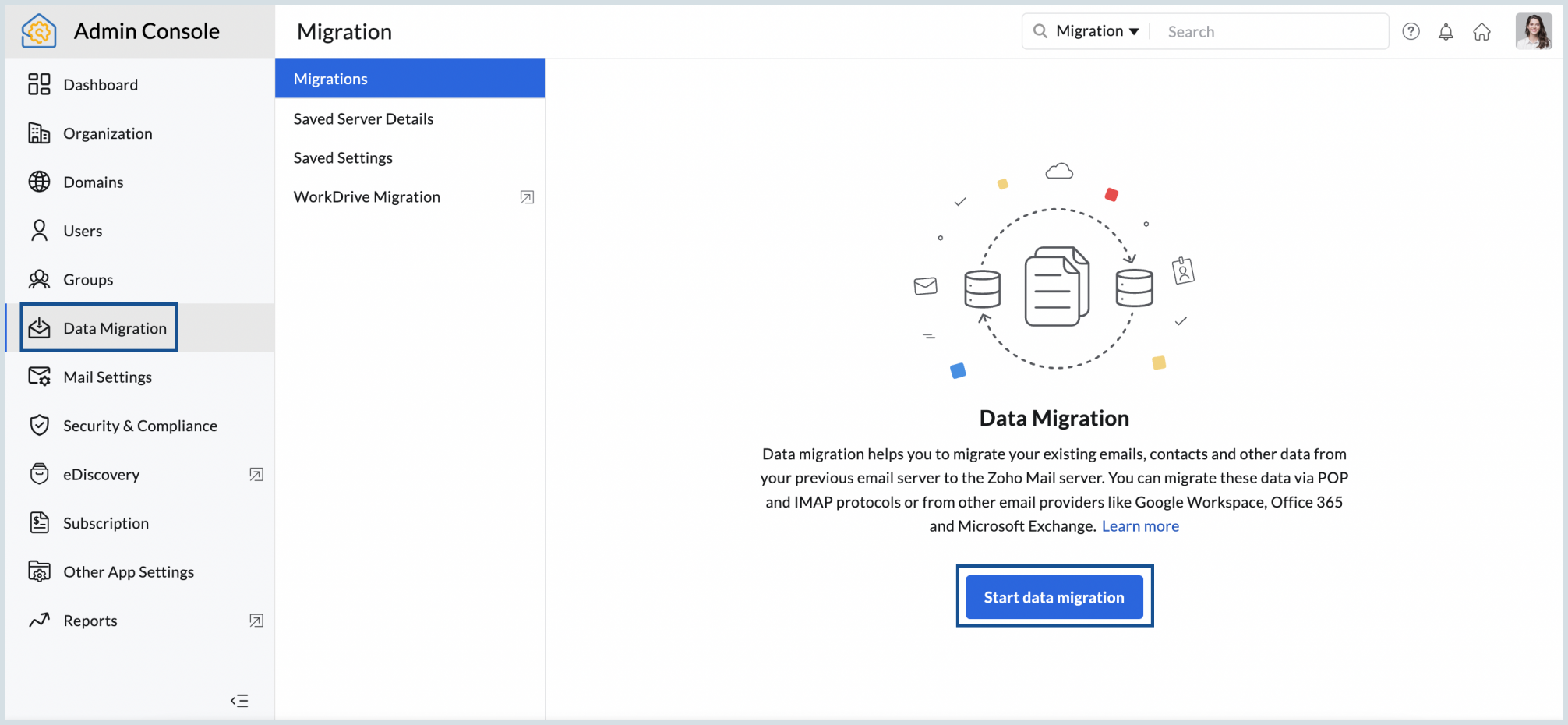 - Choose Data Migration from the left menu.