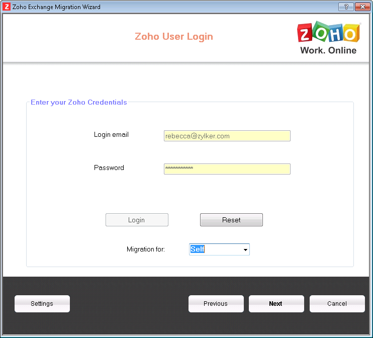 - Launch the Wizard using the desktop shortcut or execute the file 'ZohoMigrationWizard.exe' from \Zoho\Zoho Exchange Migration\bin folder, under the installation path.