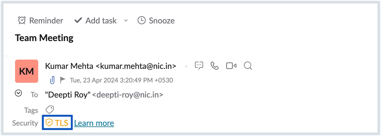 Encryption of emails in transit helps keep your emails safe while it travels from the sender to the recipient. This protects your emails from being read by unauthorized parties, while in transit. The level of encryption of the emails you receive is displayed in the email preview pane.